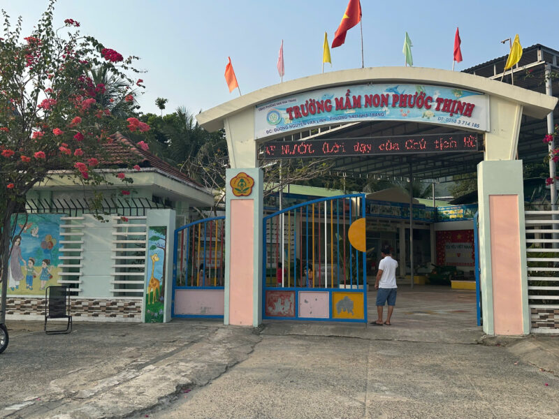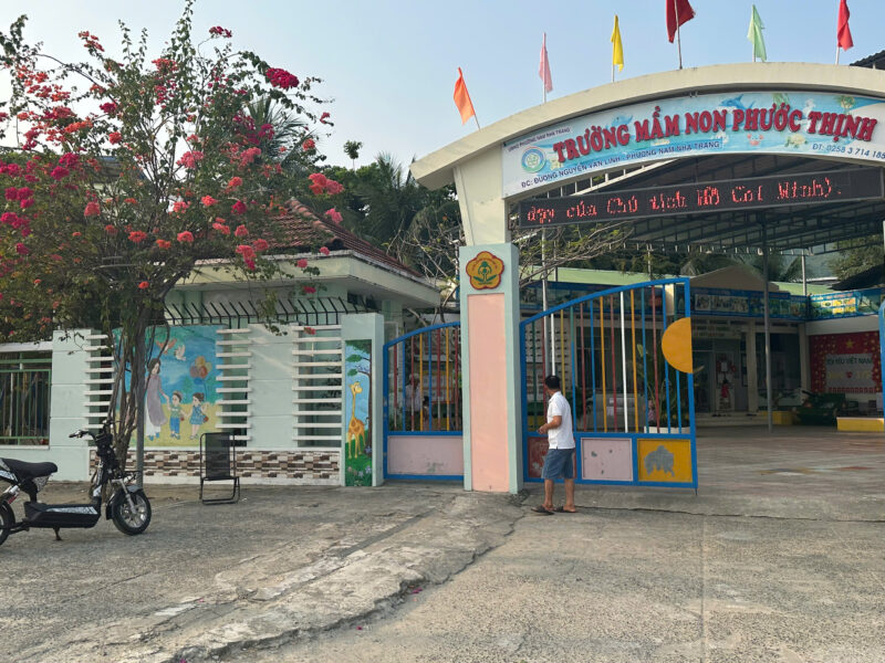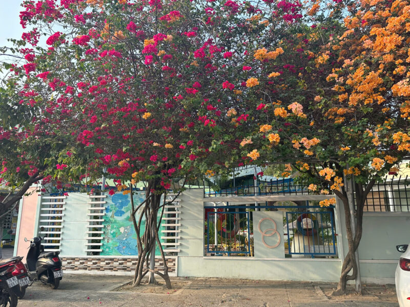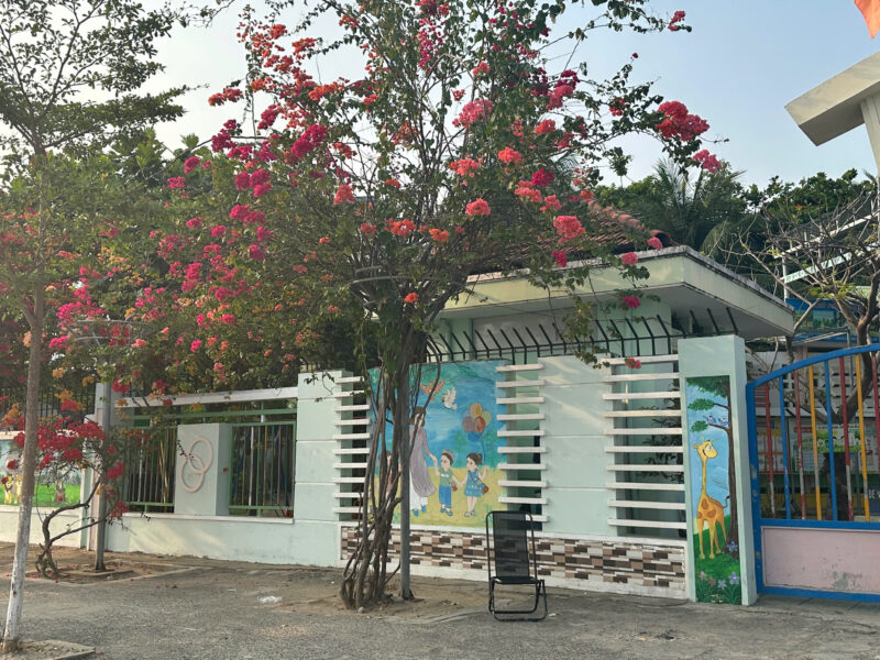 Trường Mầm non Phước Thịnh mang một vẻ đẹp trong lành, thân thiện với khung cảnh xanh mát và rực rỡ sắc màu. Mỗi mùa hoa giấy nở rộ, cả khuôn viên như khoác lên mình tấm áo mới đầy sức sống với những gam màu tươi tắn, tạo nên không gian học tập thật gần gũi và ấm áp.