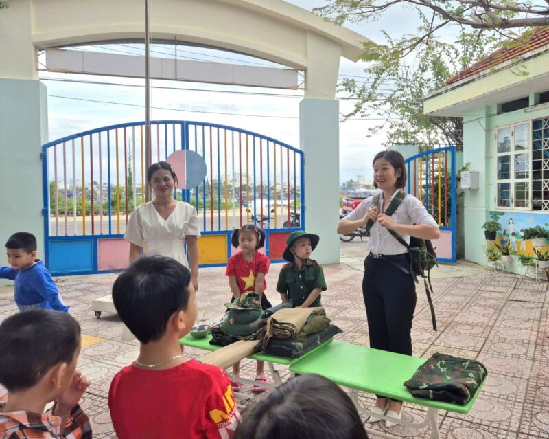 Hoạt động giúp trẻ hiểu hơn về nghề bộ đội, bồi dưỡng lòng yêu mến và biết ơn các chú đã bảo vệ Tổ quốc.