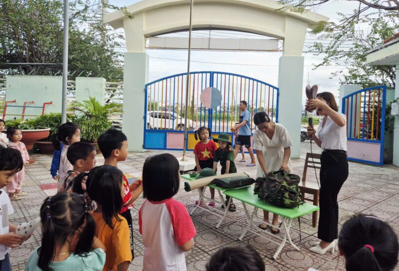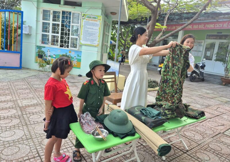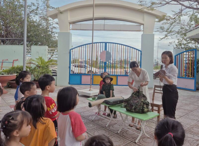 Hoạt động giúp trẻ hiểu hơn về nghề bộ đội, bồi dưỡng lòng yêu mến và biết ơn các chú đã bảo vệ Tổ quốc.