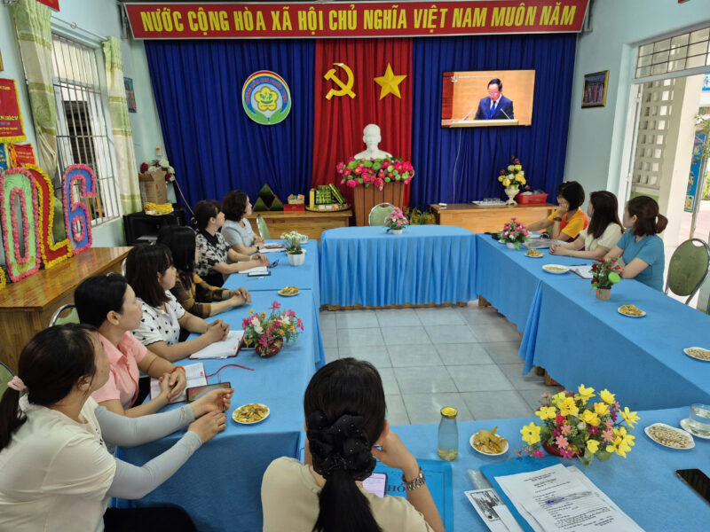 Thực hiện Công văn của Đảng ủy phường Nam Nha Trang về việc triển khai trực tuyến Hội nghị toàn quốc nghiên cứu, học tập, quán triệt và triển khai thực hiện Nghị quyết số 79-NQ/TW và Nghị quyết số 80-NQ/TW của Bộ Chính trị, sáng ngày 25/02/2026, Chi bộ trường Mầm non Phước Thịnh đã tổ chức cho toàn thể cán bộ, đảng viên tham dự Hội nghị bằng hình thức trực tuyến theo đúng tinh thần chỉ đạo.