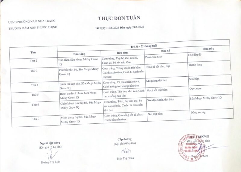 Thực đơn tuần 19 từ 12/01 đến 17/01/2026