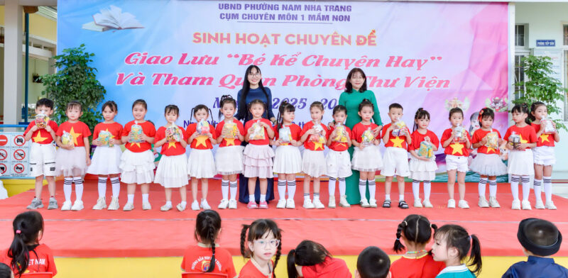 Nổi bật trong chuỗi hoạt động là việc nhà trường đăng cai tổ chức sinh hoạt chuyên đề cụm chuyên môn 1 với nội dung “Bé kể chuyện hay” thông qua câu chuyện “Sự tích hoa cúc trắng”. Tiết mục do các bé mẫu giáo 5–6 tuổi biểu diễn đã mang đến không khí sinh động, hấp dẫn, thể hiện sự tự tin, khả năng ngôn ngữ và cảm thụ văn học của trẻ. Đây cũng là dịp để đội ngũ giáo viên trong cụm cùng trao đổi, học hỏi kinh nghiệm trong việc tổ chức các hoạt động phát triển ngôn ngữ cho trẻ.