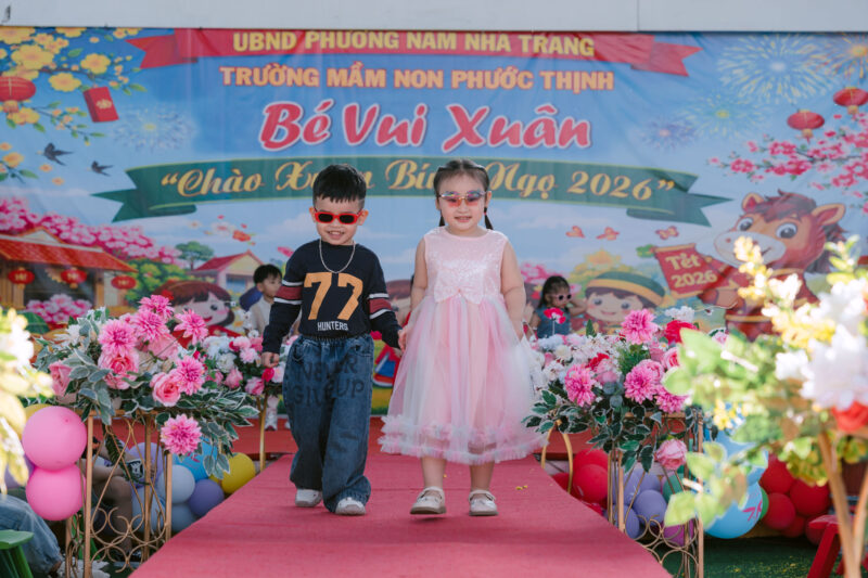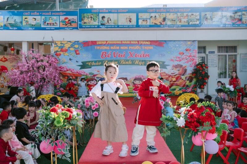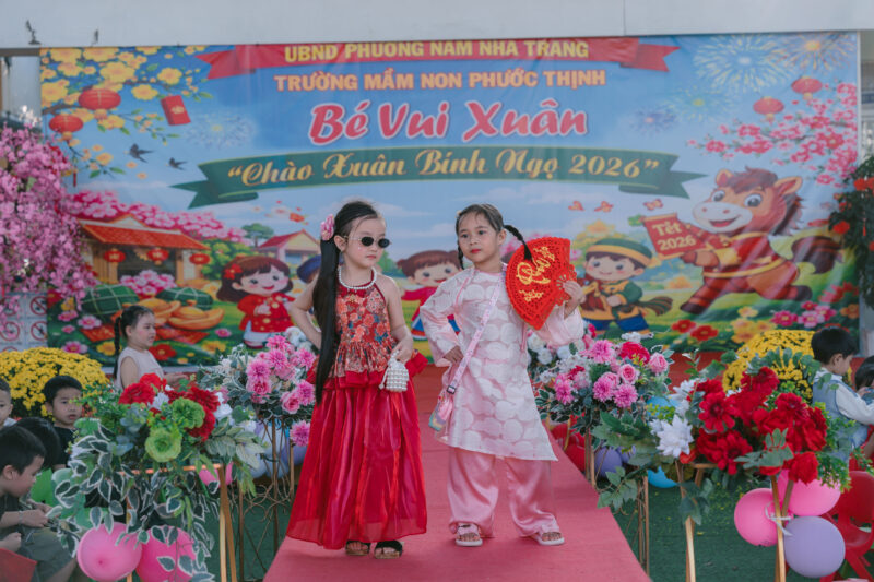 Hòa trong không khí rộn ràng chào đón mùa xuân mới, chiều ngày 05/02/2026, Trường Mầm non Phước Thịnh đã tổ chức chuỗi hoạt động “Bé vui đón Xuân Bính Ngọ 2026” với điểm nhấn là chương trình biểu diễn thời trang đầy màu sắc. Hoạt động thu hút sự tham gia của gần 160 trẻ, mang đến không khí vui tươi, sôi nổi và tràn ngập tiếng cười trong khuôn viên nhà trường. Trên sân khấu, các bé tự tin sải bước trong những bộ trang phục rực rỡ, đáng yêu, thể hiện sự mạnh dạn, hồn nhiên và niềm vui khi được tỏa sáng.