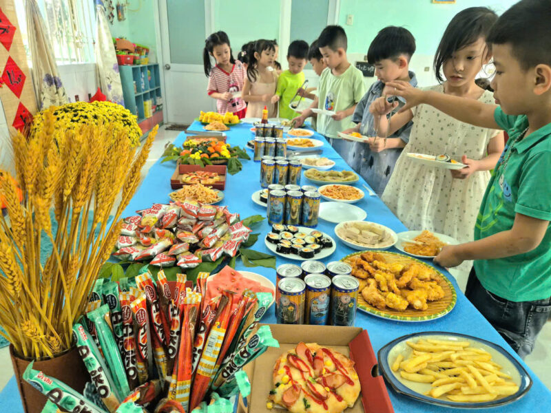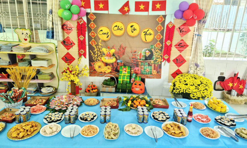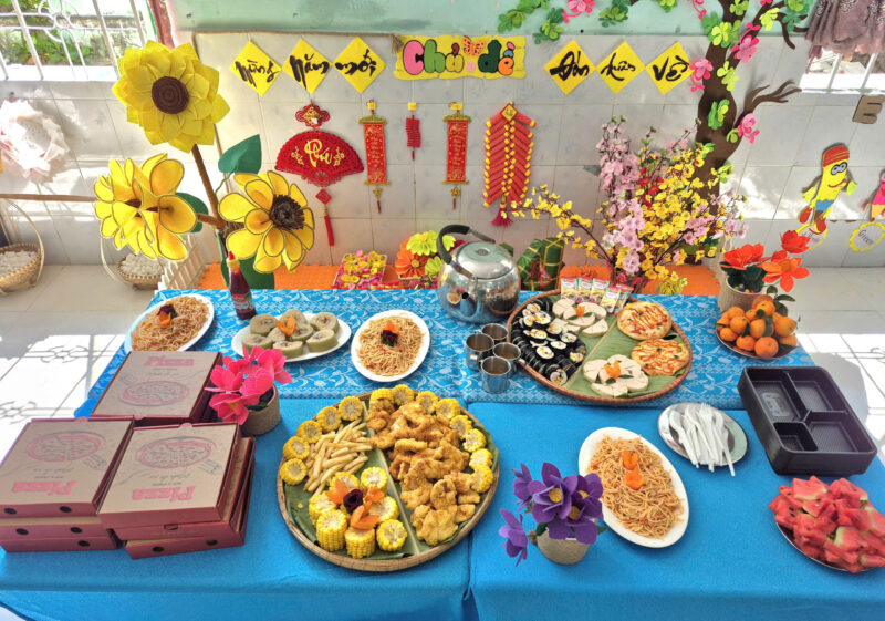 Tiếp nối chuỗi hoạt động đón xuân, trưa ngày 06/02/2026, nhà trường đã tổ chức tiệc buffet tại các nhóm lớp trong không khí ấm áp, thân thương. Các bé được thưởng thức nhiều món ăn hấp dẫn, phù hợp lứa tuổi, đồng thời rèn luyện kỹ năng tự phục vụ, biết chia sẻ và giữ gìn nề nếp văn minh trong ăn uống. Chuỗi hoạt động không chỉ mang đến cho trẻ những trải nghiệm vui vẻ, ý nghĩa trong những ngày đầu năm mới mà còn góp phần tạo nên ký ức tuổi thơ tươi đẹp dưới mái trường Mầm non Phước Thịnh.
