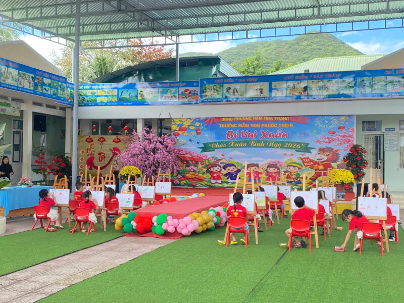 Sáng 04/02/2026, trường Mầm non Phước Thịnh tổ chức Hội thi vẽ tranh cấp trường năm học 2025-2026 dành cho trẻ Mẫu giáo 5-6 tuổi với chủ đề “Thế giới quanh em”. Hội thi thu hút 32 tác phẩm dự thi, thể hiện sinh động góc nhìn hồn nhiên, sáng tạo của trẻ về gia đình, trường lớp, thiên nhiên và cuộc sống xung quanh.